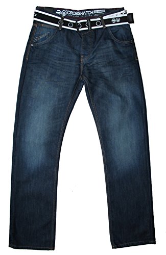 Crosshatch offer Crosshatch Men's Wak Straight Leg Dark Wash Belt Jeans, 32W 32L. This awesome product currently limited units, you can buy it now for £21.99, You save -