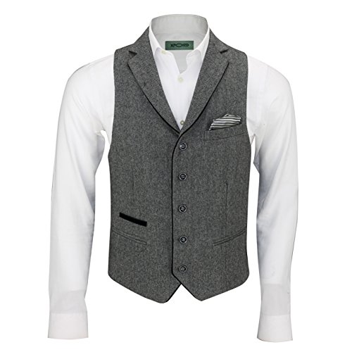 Xposed offer Men Brown Grey Fitted Collar Waistcoat Velvet Trim Herringbone Tweed Casual Vest. This awesome product currently limited units, you can buy it now for £28.99, You save -